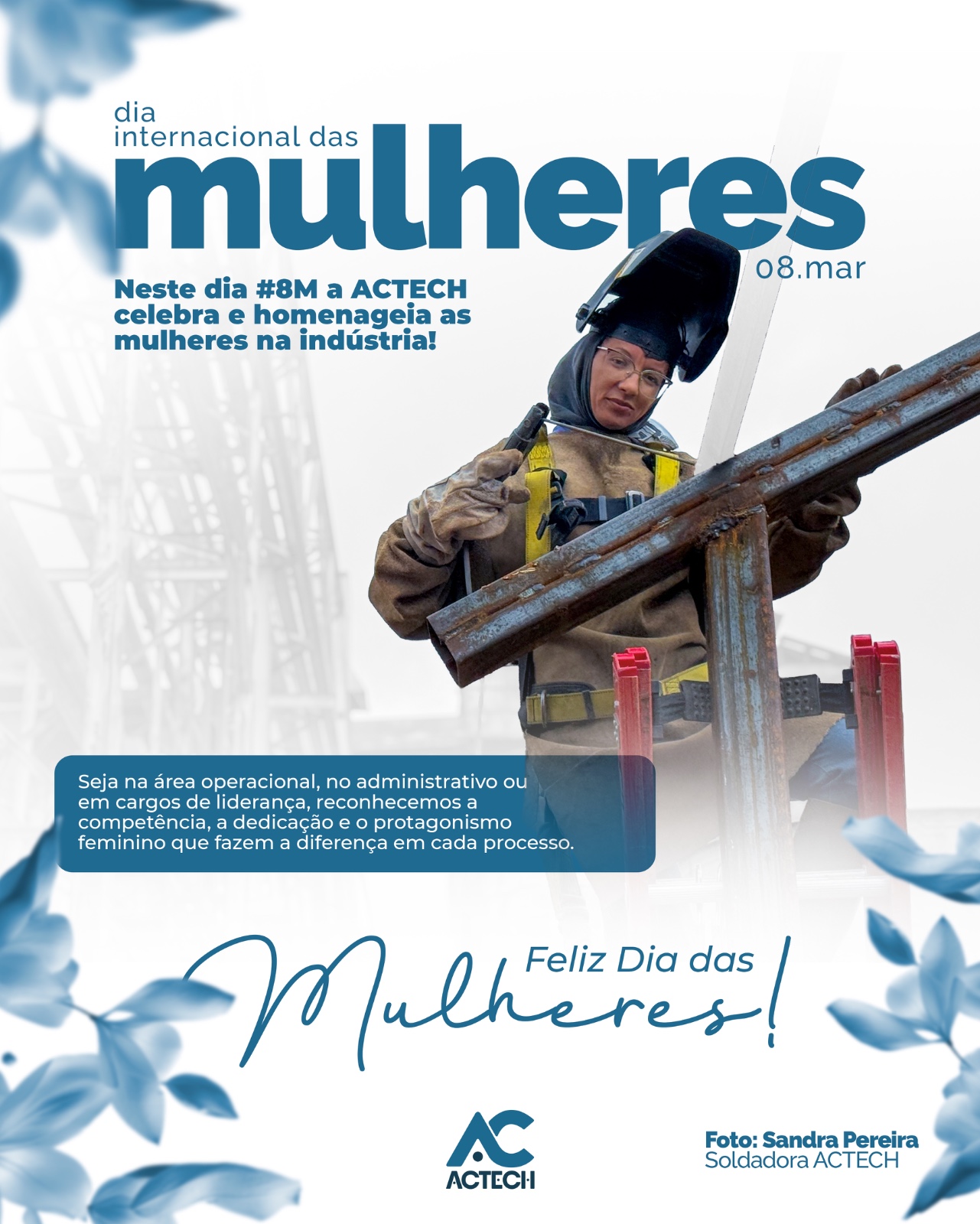 Sandra Pereira é soldadora na empresa e para ela: “Ser mulher na ACTECH é saber que somos capazes de exercer qualquer função, tendo a liberdade de escolher a profissão que amamos.”